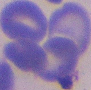 a crescent or half moon shape. The misshapen cells lack plasticity and can